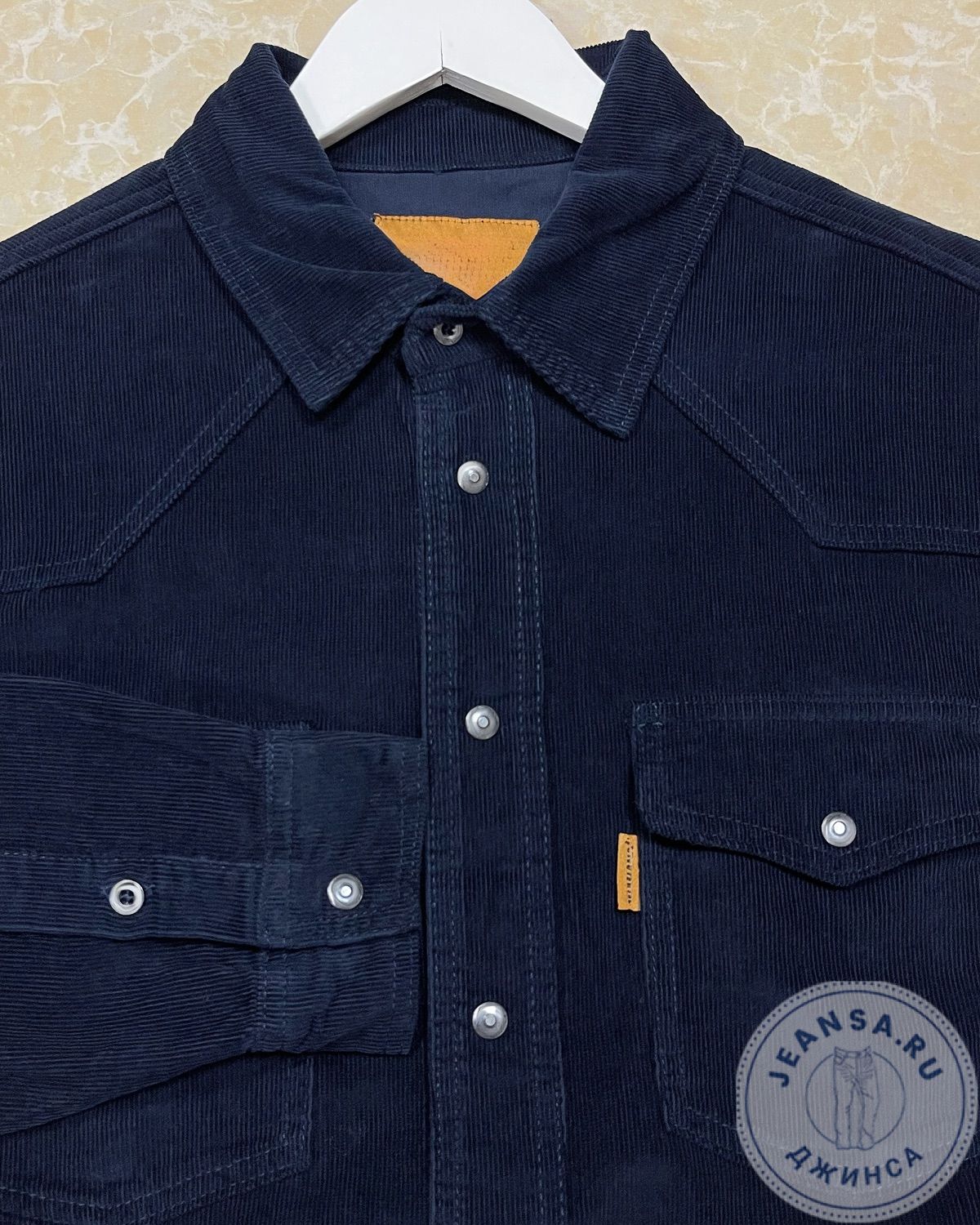 Мужская вельветовая рубашка, ткань в мелкий рубчик.