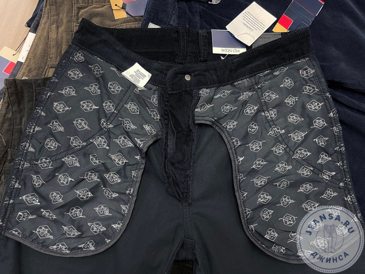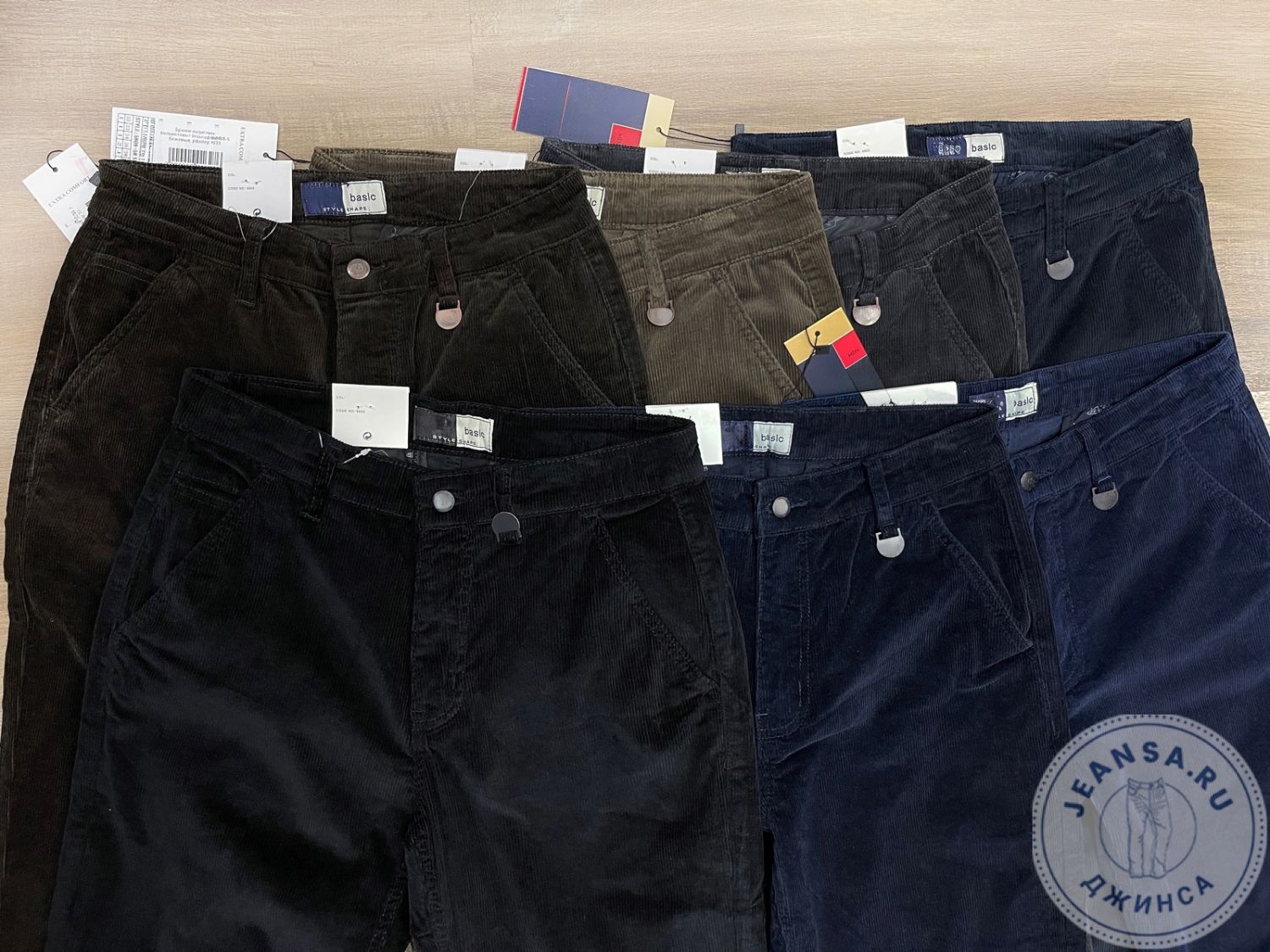 Брюки-хулиганы вельветовые с боковыми косыми карманами, задние прорезные на пуговицу.