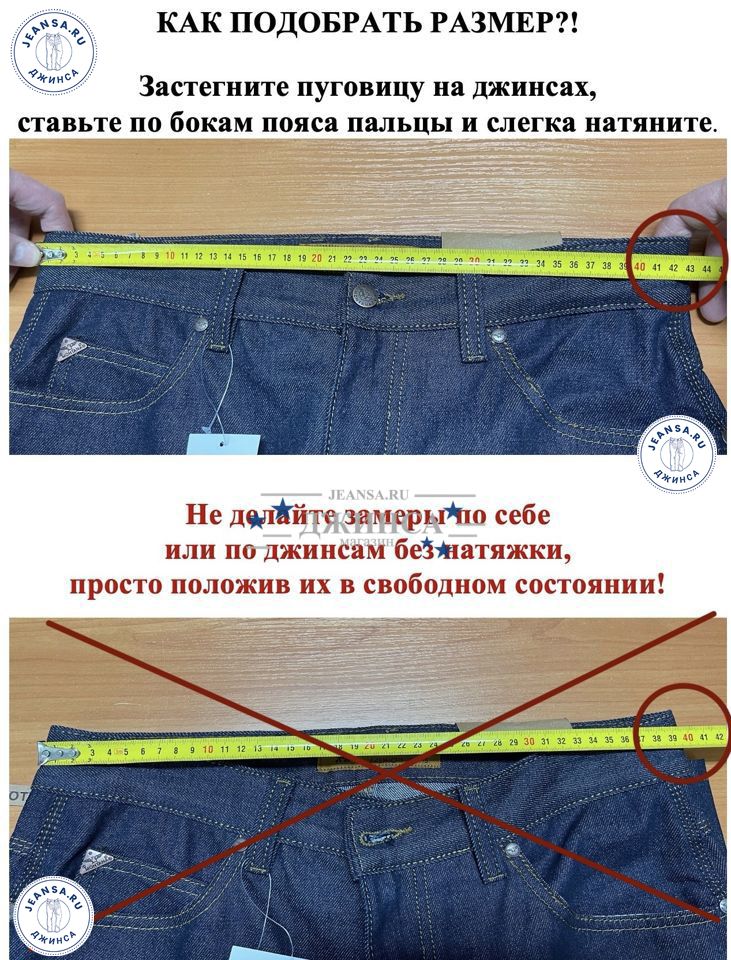 * Рекомендация: Чтобы не ошибиться с выбором размера, возьмите свои джинсы/брюки - и измерь их (пояс, длину, ширину штанины по низу). Так вы получите максимально точный результат. Пояс в лёгкую натяжку меряется (см. последнее фото)